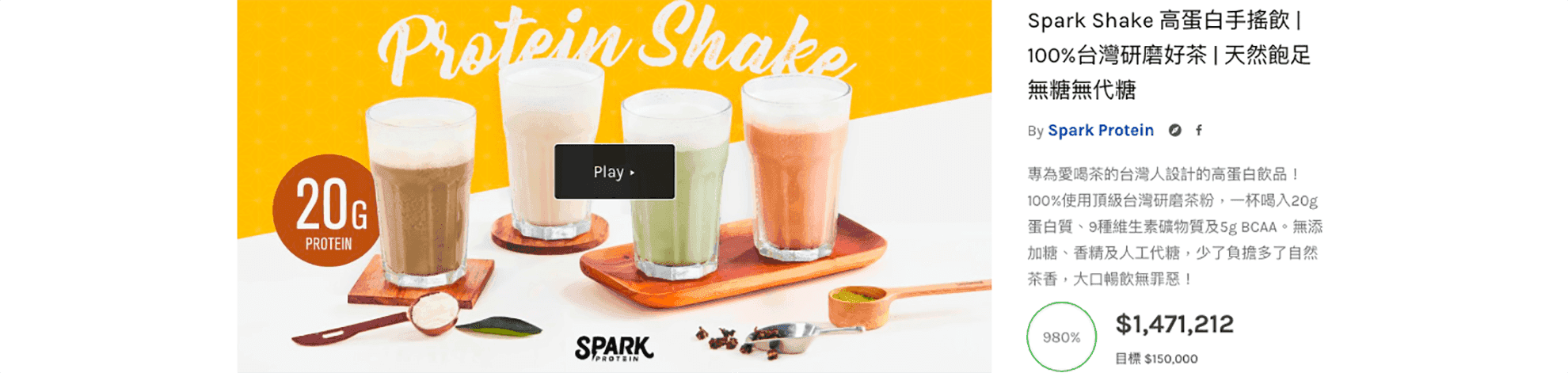Spark Protein 星睿視覺規劃 群眾募資 星睿食品是新創的飲品品牌,致力於改善高蛋白食品的口感,讓產品更加美味。傳統高蛋白食品提供重力訓練、運動者,補充能量以增加肌力,但星睿調配出新的使用方法,讓它成為維持體重的好幫手。這次,DC FILMS傾心處理產品的視覺形象,規劃以影片、平面以及設計等方向呈現。 Client: Spark Protein 星睿食品 Website: sparkprotein.com Services: 視覺風格統籌,製片,攝影,腳本設計 Idea 因有產品上市壓力,本案拍攝時程較趕,但DC FILMS仍全力以赴,另也搭配產品募資活動,規劃出可供客戶使用的視覺素材。一開始,我們即決定以飲品的色澤、質感,運用攪拌飲料的動作,搭配搶眼的陳設,凸顯產品的清涼及可口。 Process 拍攝食品廣告時,常運用許多假的陳設,但本次為讓產品更接近原本面貌,DC FILMS最終以真實的食材來拍攝。實拍時,飲料的顏色與冰塊是兩大難題,為呈現最優質的顏色,我們嘗試50種以上的調配配方;冰塊則要持續更新,才能維持飲品樣貌,因此我們購入整箱冰塊使用。整個拍攝過程,即是參與人員的手被冰塊都凍成冰,但仍不懈地完成工作。 Result 短短的一個月內,DC FILMS從設計到交片,幫助客戶在募資活動公開首日,即達到200%的高標。最終,募資更是獲得980%的超高成效,這樣的成績讓所有人都很振奮,證明優秀的產品,加上好的視覺規劃,得以有加乘效果。 Jeremy Tsai 總監 Photography